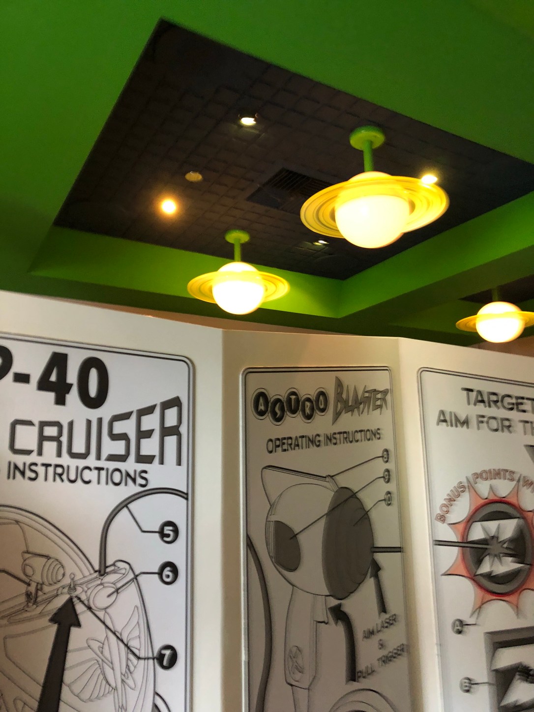Buzz Lightyear was pretty awesome. It’s different than the Disney World one in that the guns actually come out so you can hold them and move more freely and the back lights up when you hit a target and the target lights up when you hit it!