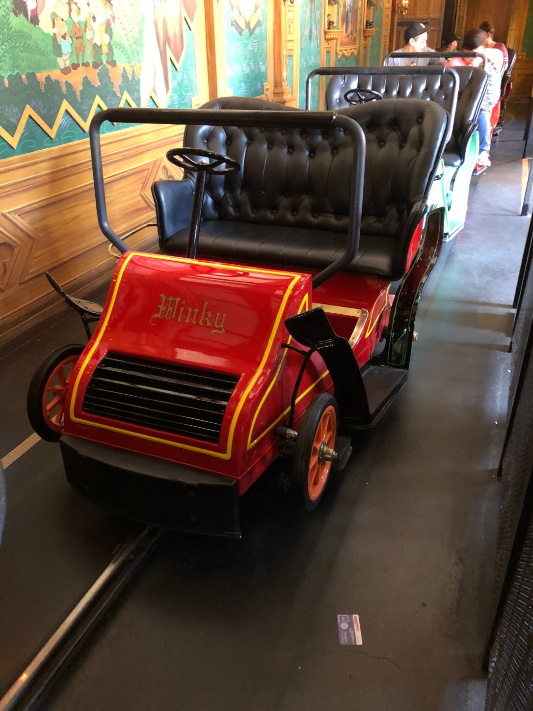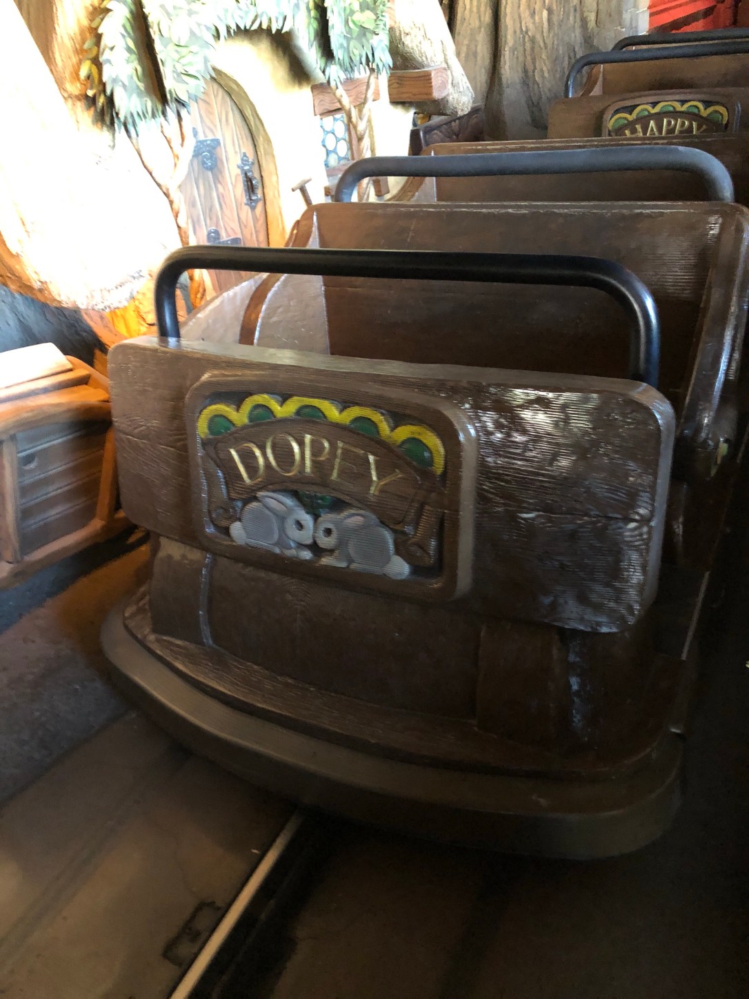My favorite dwarf is Dopey so I was pretty excited when our car pulled up (it’s the little things). It’s been a long time since I rode the Disney World Snow White, so I can’t compare beyond that it’s the same type of ride as Mr. Toad in that it’s cute and kinda hokey and meant to be tame for the younger Disney lovers.