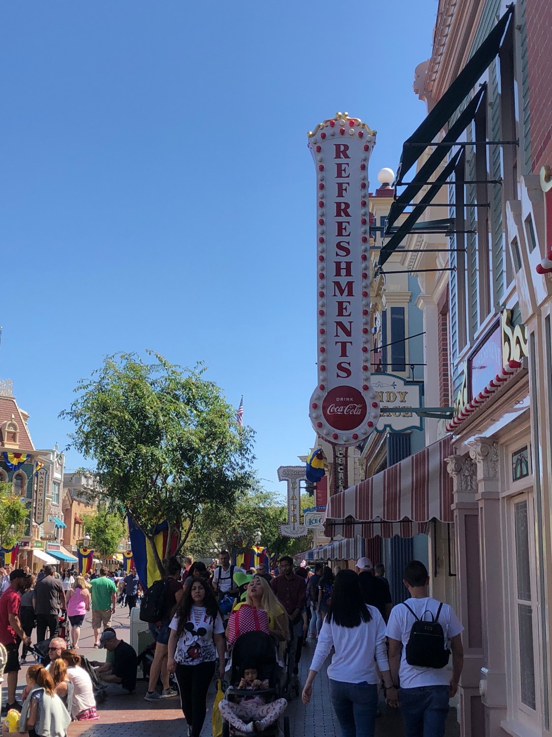 As we discovered during our time here, most of the queues in Disneyland are outside, whereas any in Disney World that are outside are covered but they’re mostly inside and air conditioned. Makes sense since it rains a lot in FL and not so much in CA. Plus, it’s way hotter and more humid in Florida.